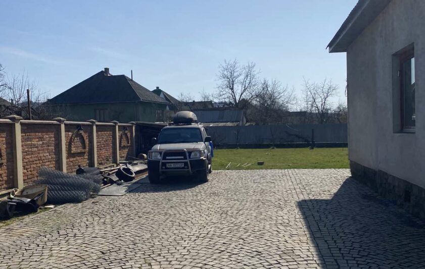 Двір викладений кам’яною бруківкою — 280 м², що створює охайний та доглянутий простір біля будинку.